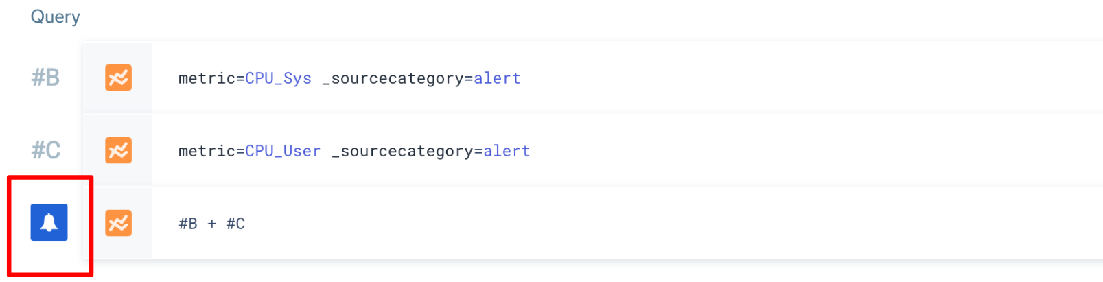 Metrics monitors can have up to 6 queries. If you're providing multiple metrics queries, use the letter labels to reference a query row. The monitor will automatically detect the query that triggers your alert, and will mark that row with a notification bell icon. See Join metrics queries for details.