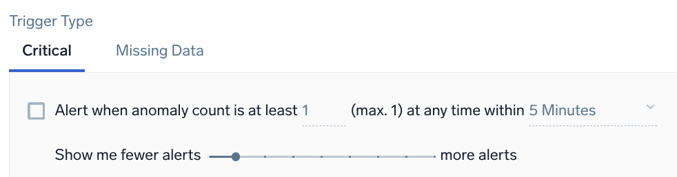 Alert when anomaly count is at least <count> (max. 1) at any time within <time range>