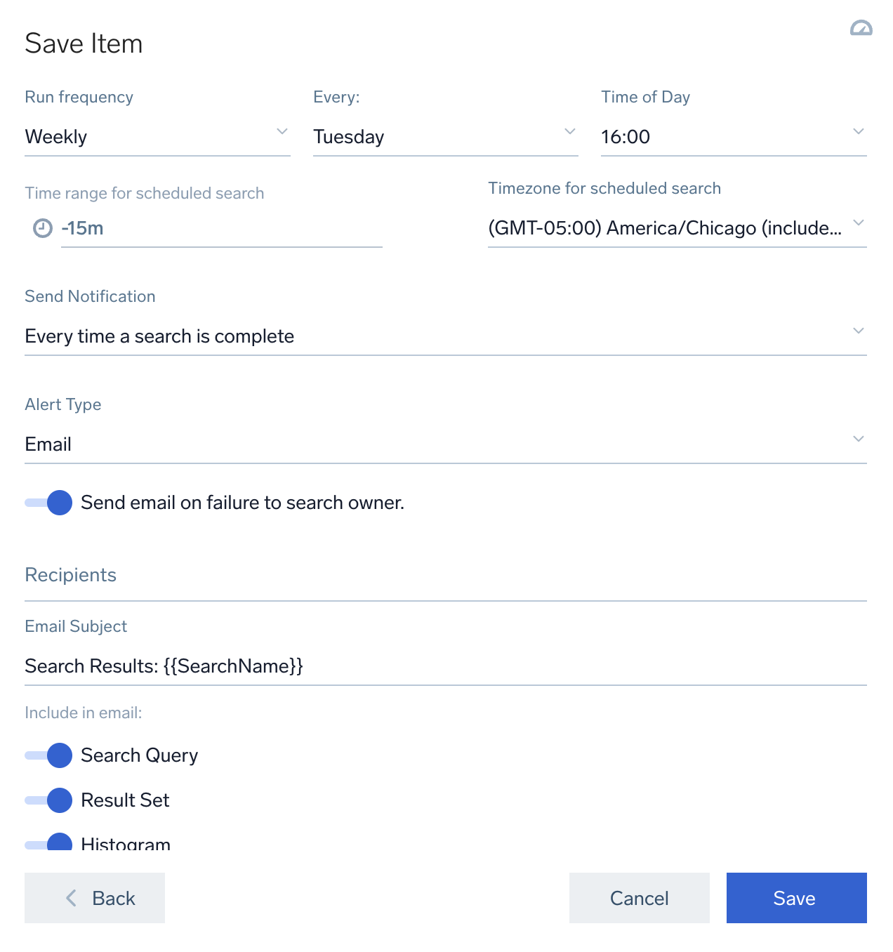 For a more detailed description of the options you can configure for a scheduled search, see Create a Scheduled Search.
