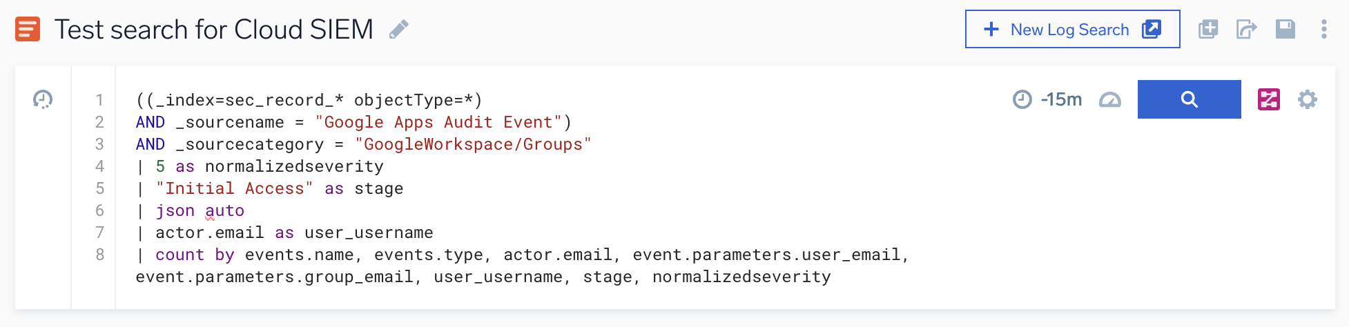 When you create a scheduled search to generate signals in Cloud SIEM, you start by creating a search query.