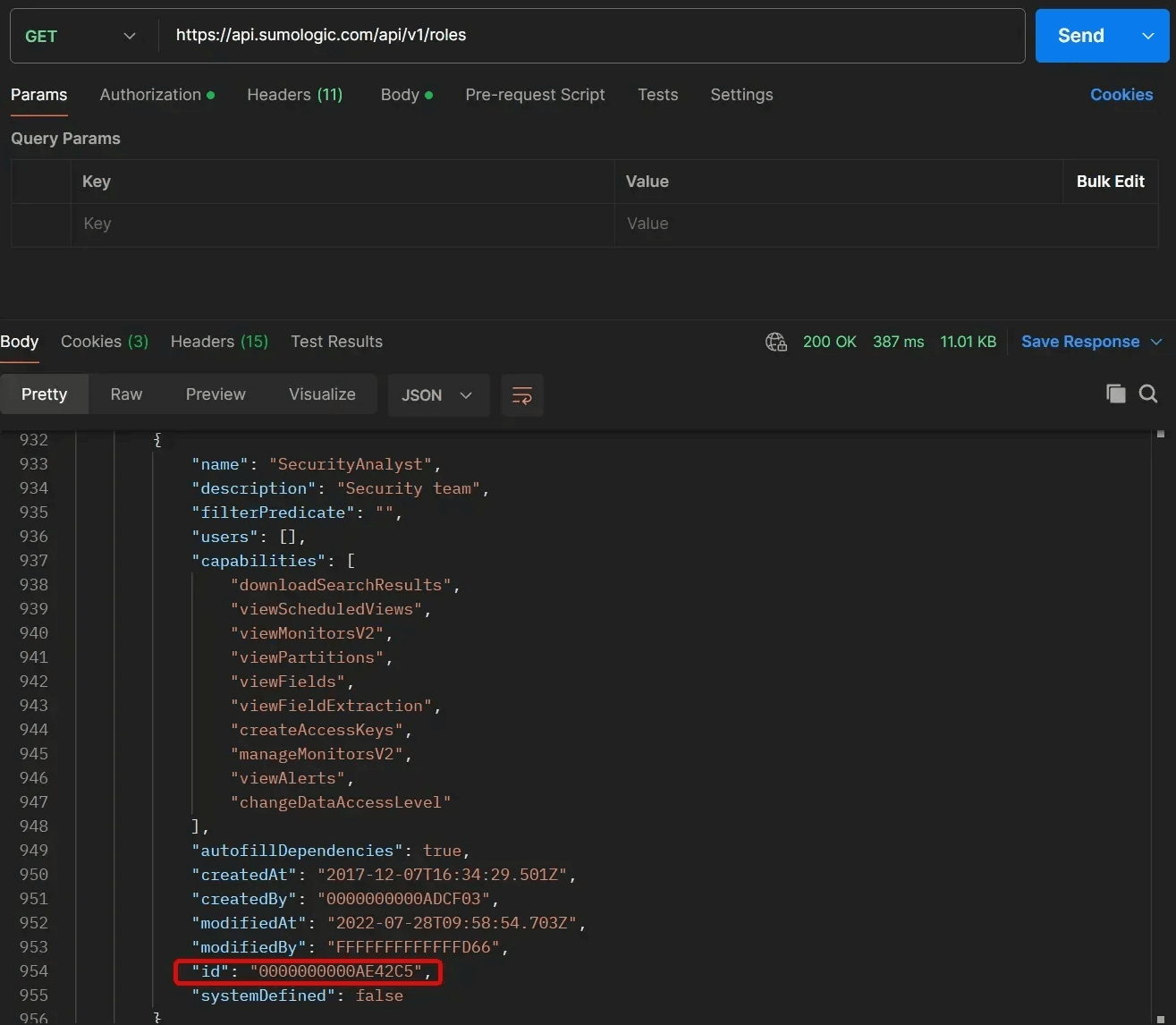 Check the Sumo Logic API documentation for "Users" for the proper body format for each of the above POST and PUT commands, to ensure that the right fields are included and in the right JSON format.