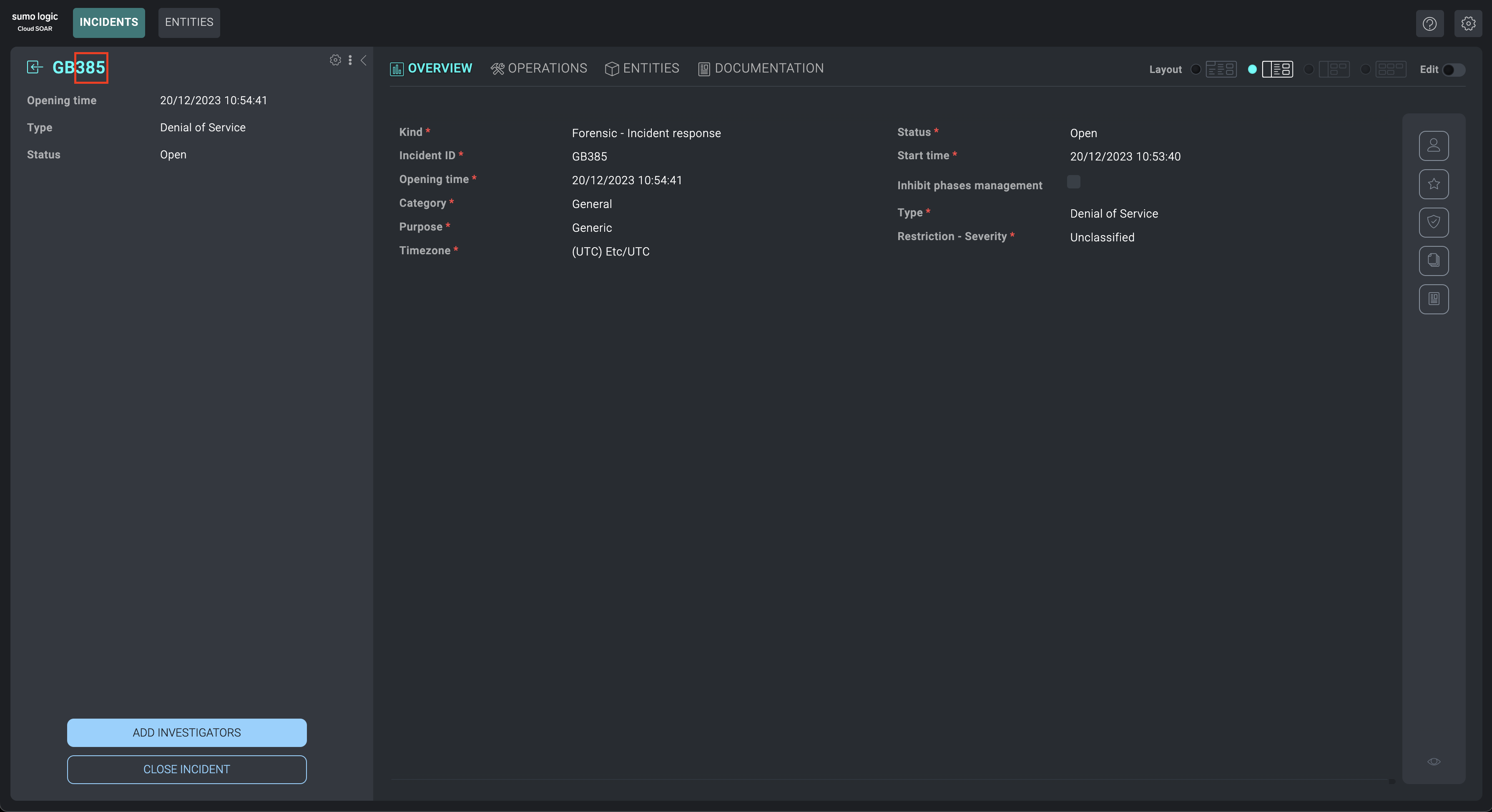 - Click Incident at the top of the dialog.