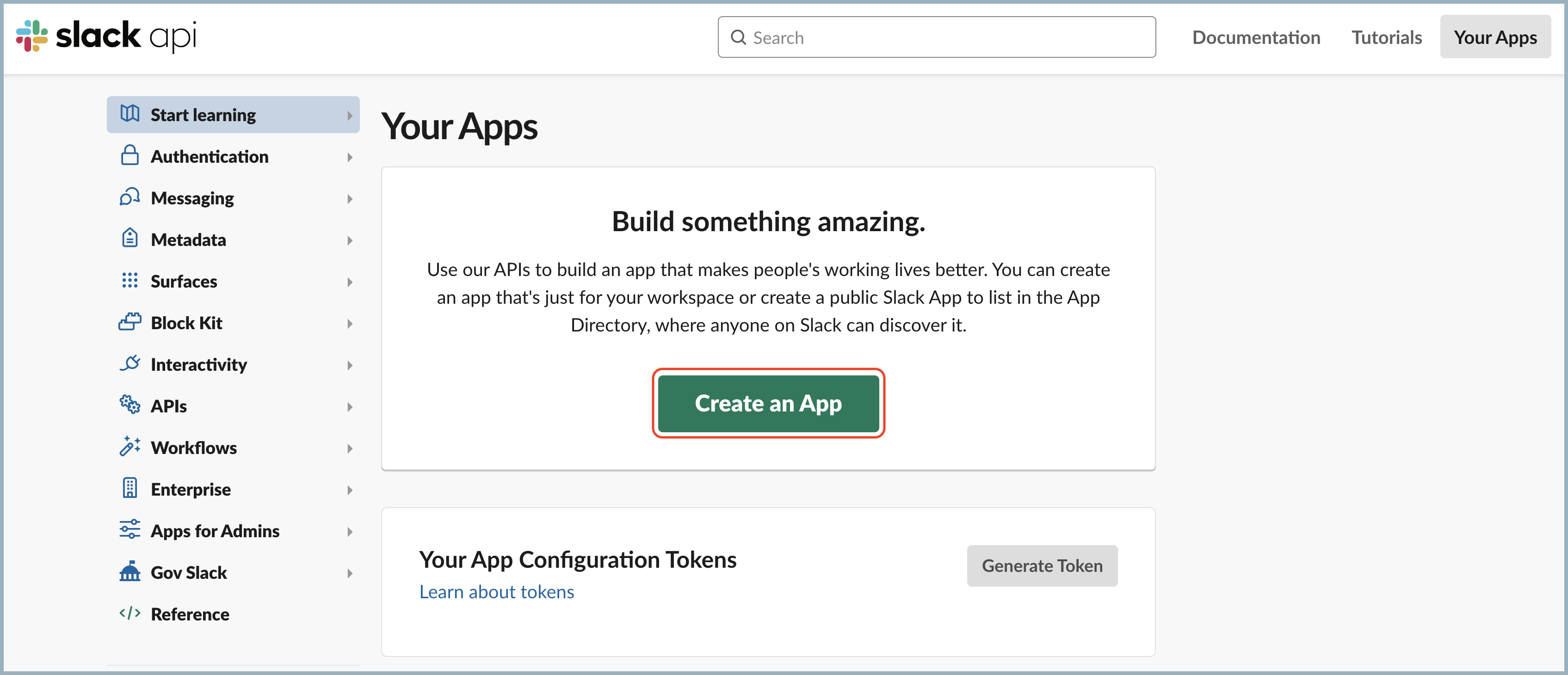 - Navigate to the Slack API page.
