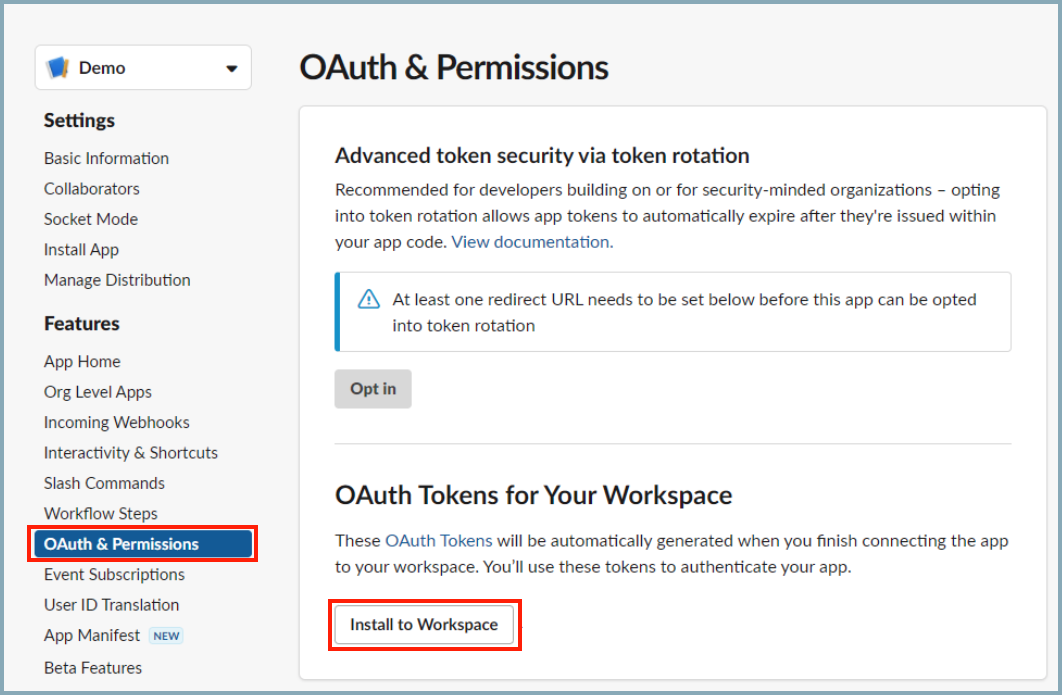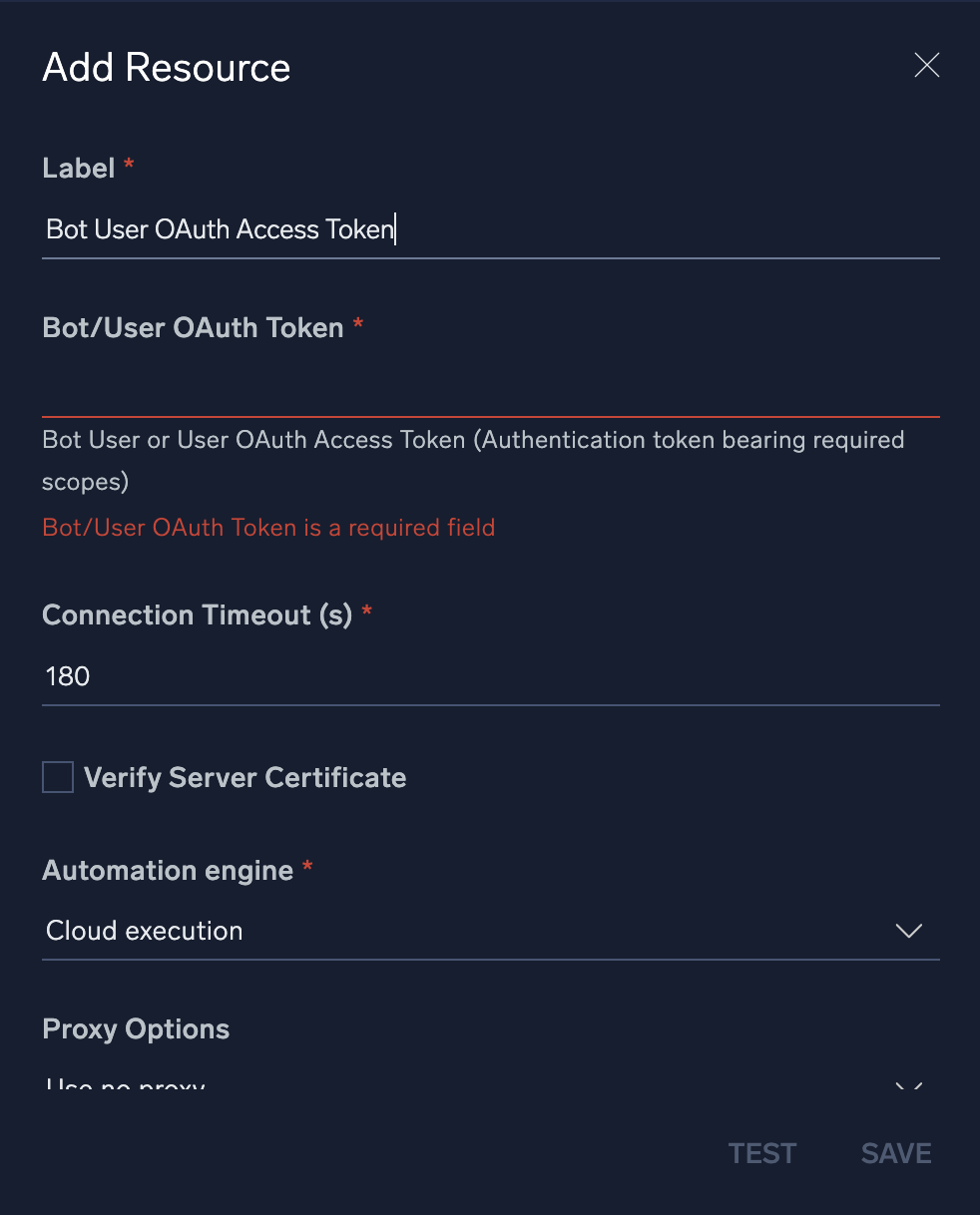 - Name the resource "Bot User OAuth Access Token".