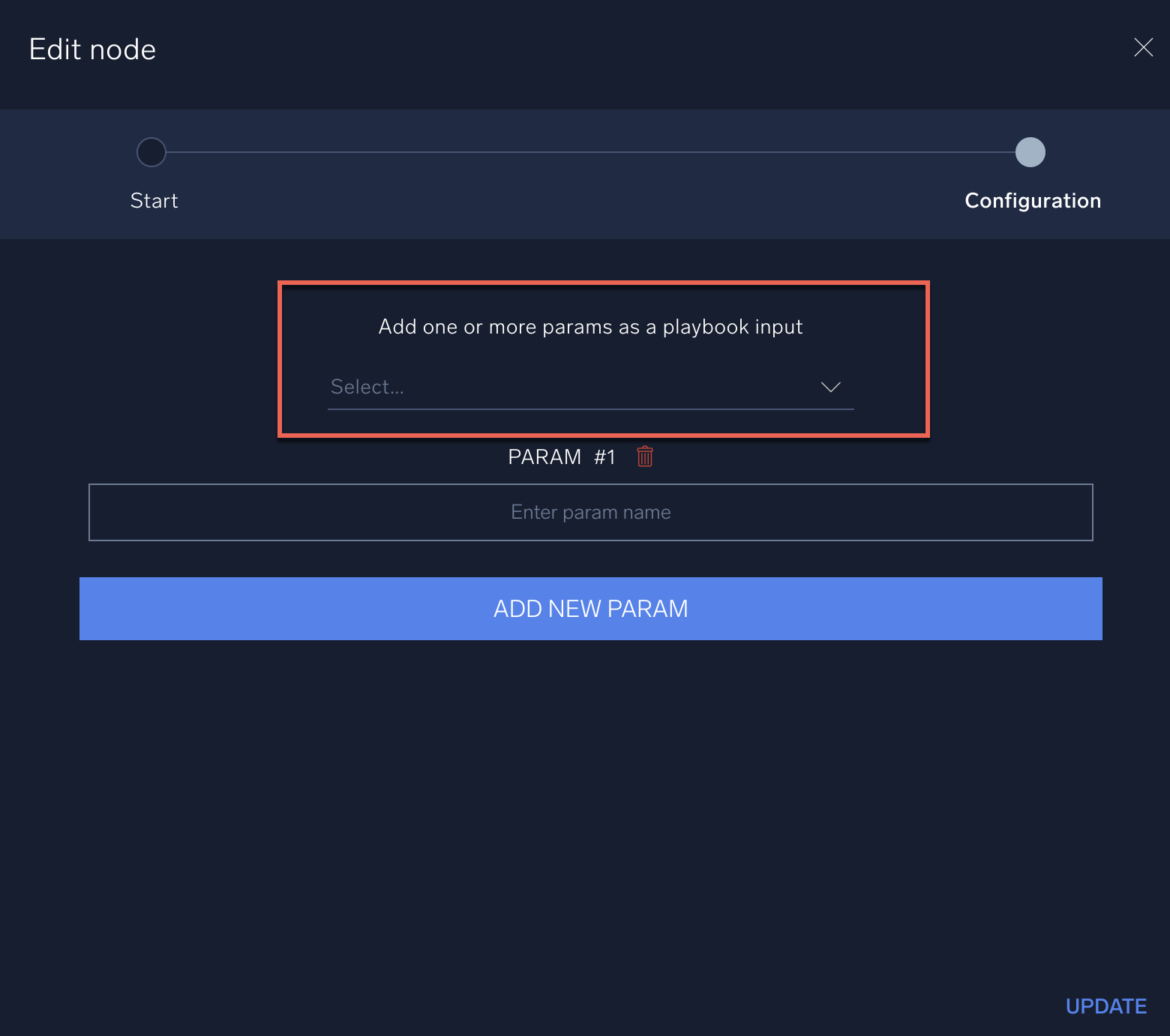 - Ensure that the Add one or more params as a playbook input field is left blank: