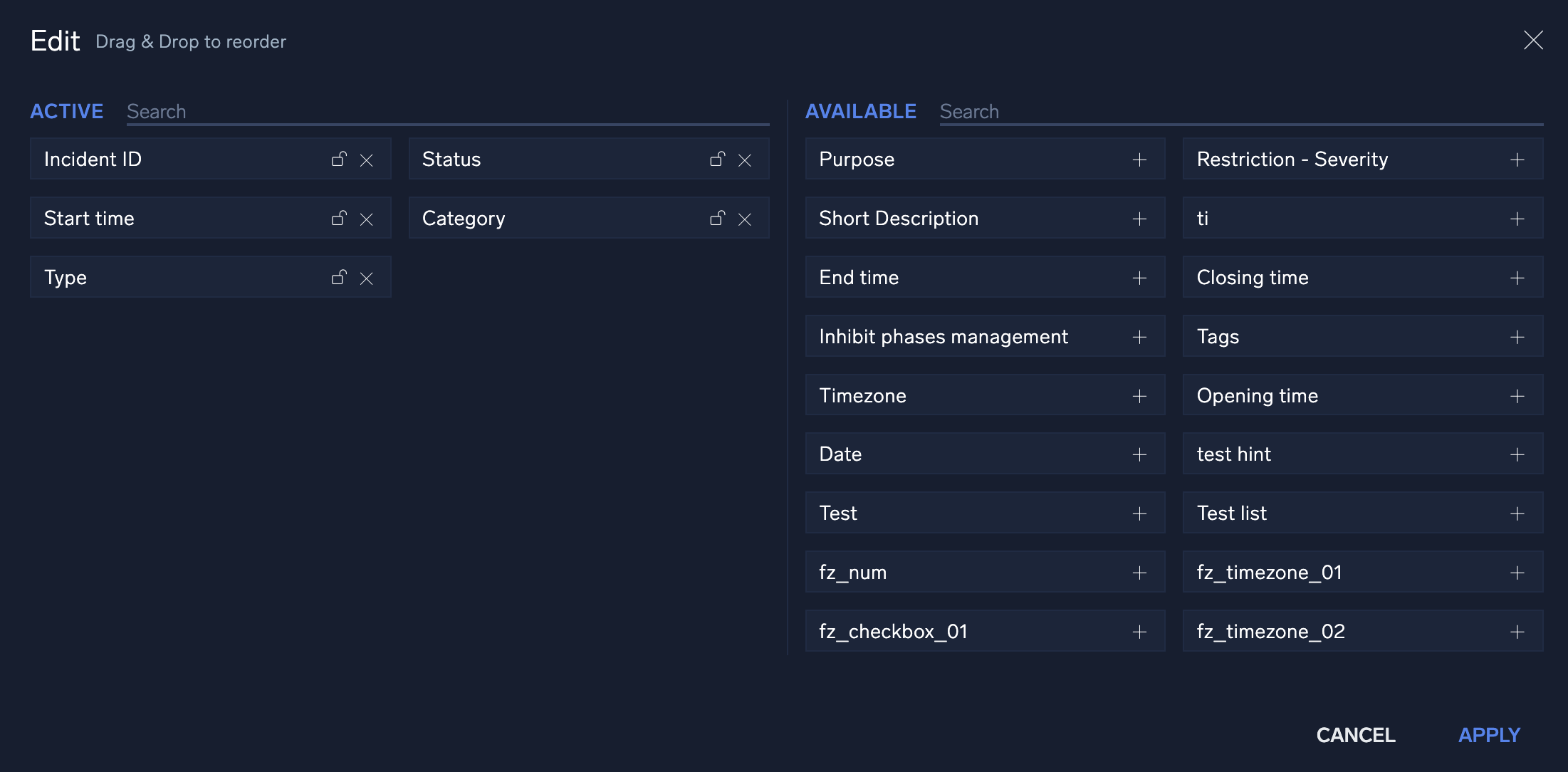 You can configure what data is to be displayed on the Incidents screen by adjusting which columns are viewable. To adjust these columns, click the filter icon