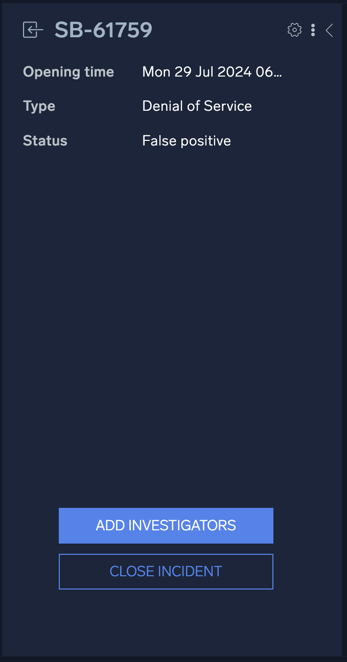 - To add another investigator to the incident, click the + icon in the upper-right of the dialog.