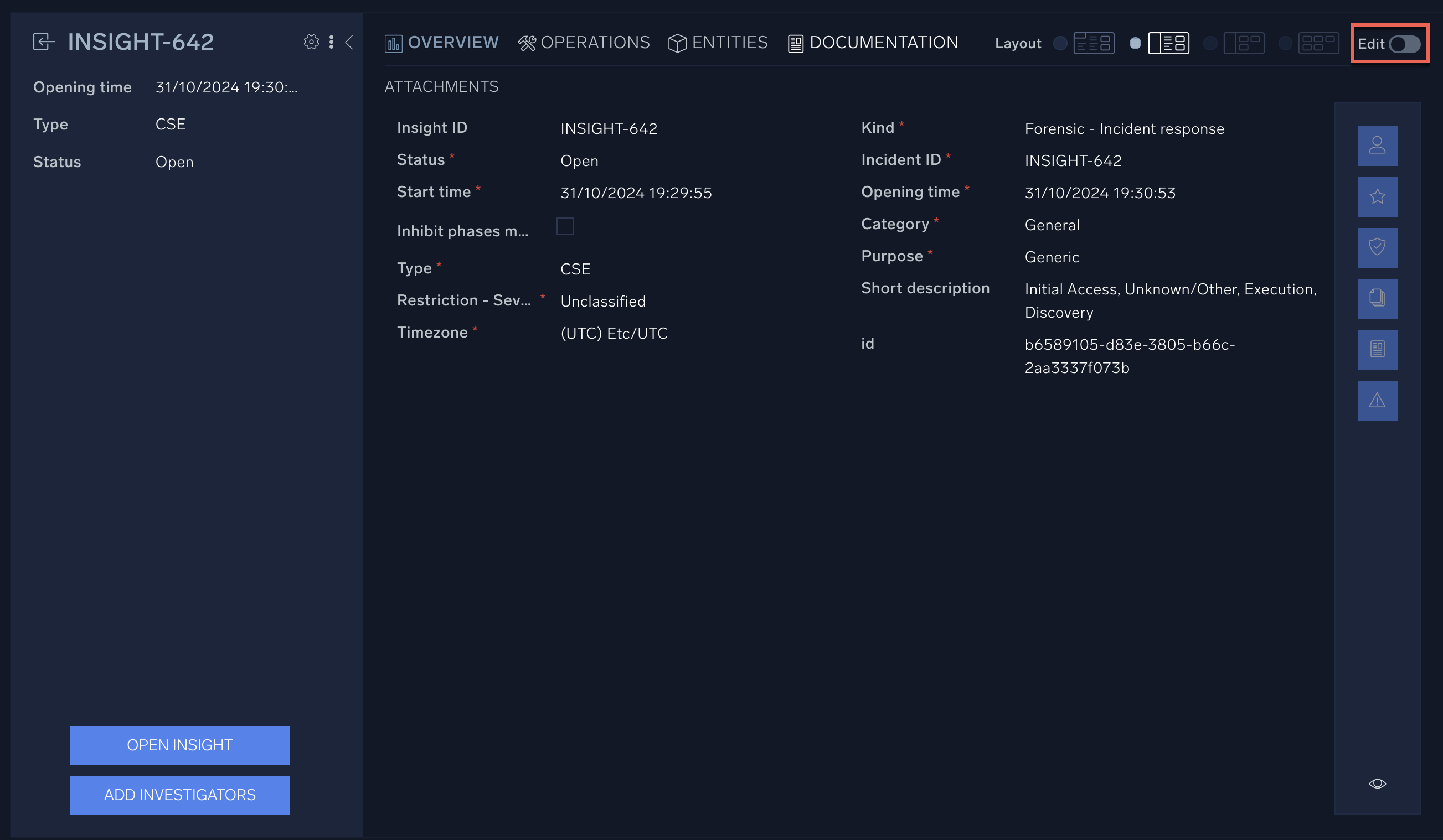 Here you’ll find basic information such as the severity level, category, opening time, and status. You can also customize your incidents and enrich them with new information by going into Edit mode.