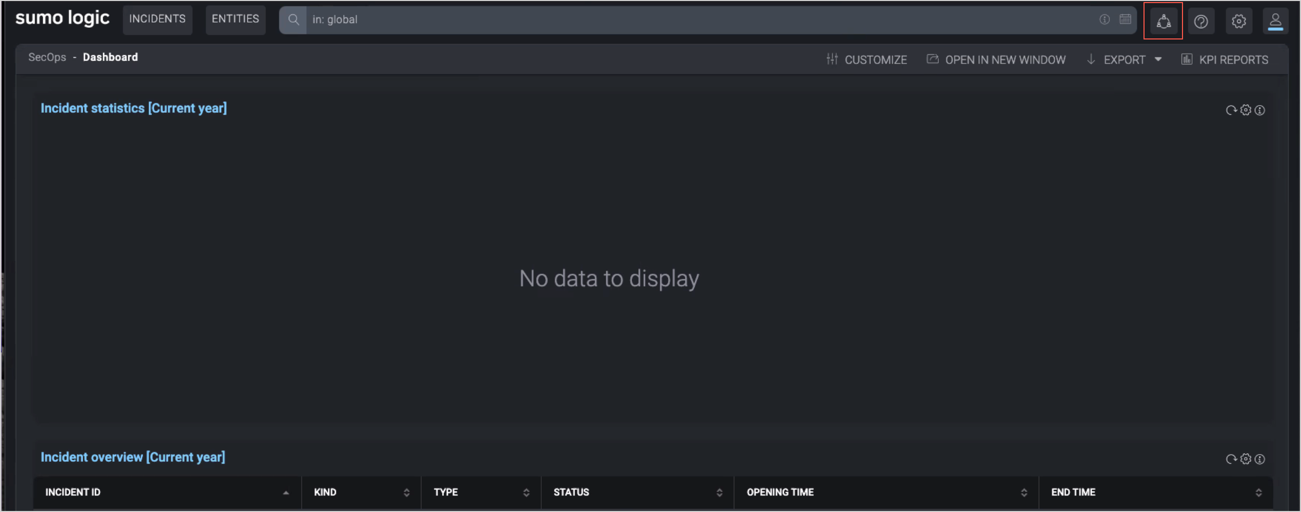 The MSSP Console is similar to the standard Cloud SOAR UI. One difference you’ll notice is the icon in the upper right corner of the UI.