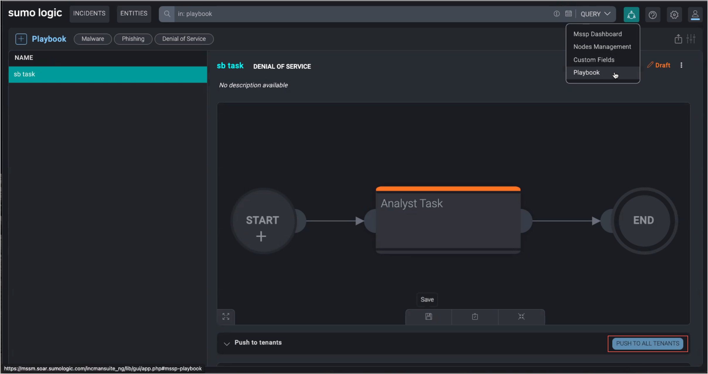 You can use the Playbook page to create and edit Playbooks, and to push Playbooks to tenants.