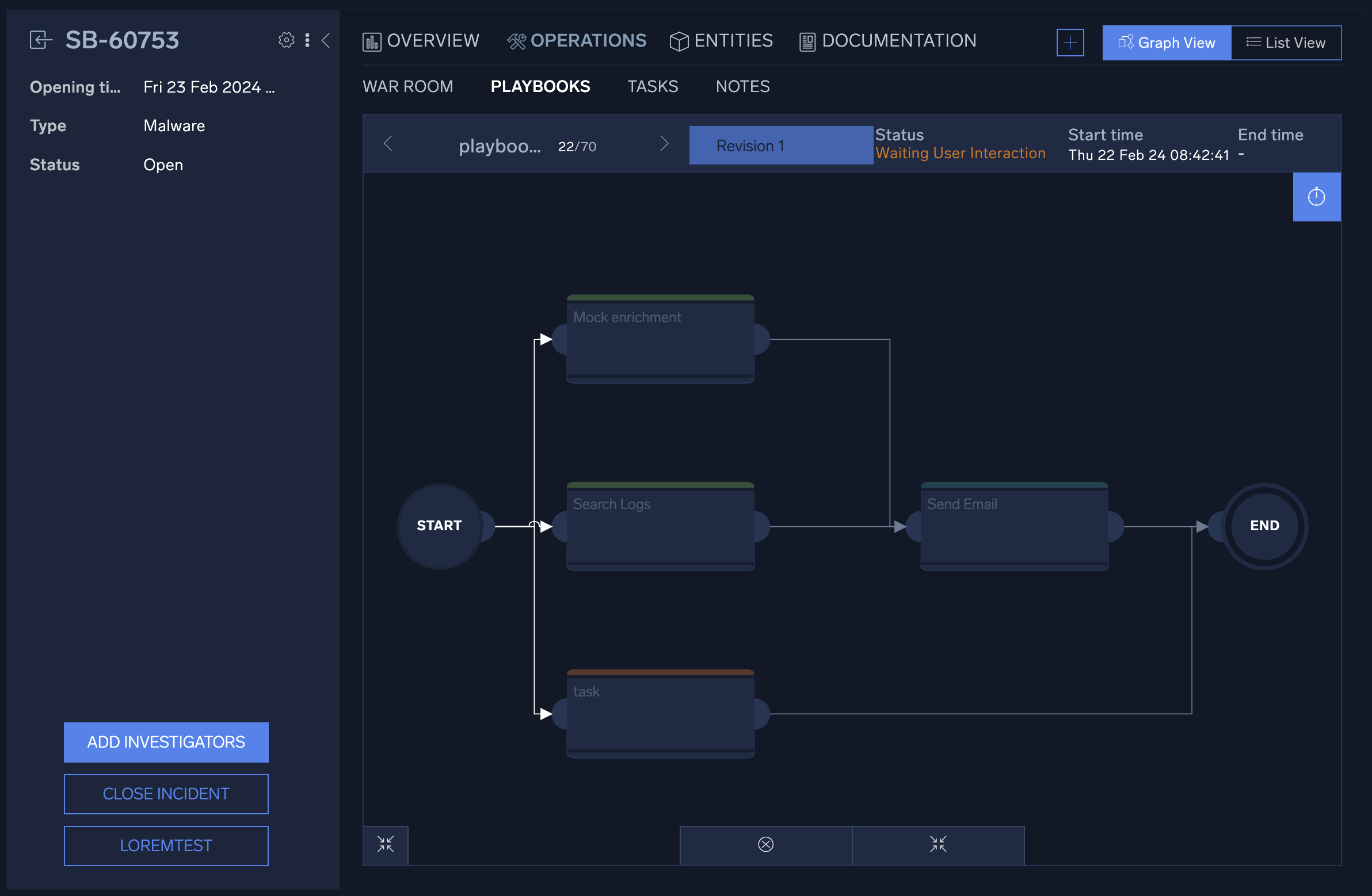 The War Room provides a complete, chronological, and detailed picture of a specific incident process. It also enables security analysts to work simultaneously on incidents with granular role-based access control (RBAC) for general and incident profiles.