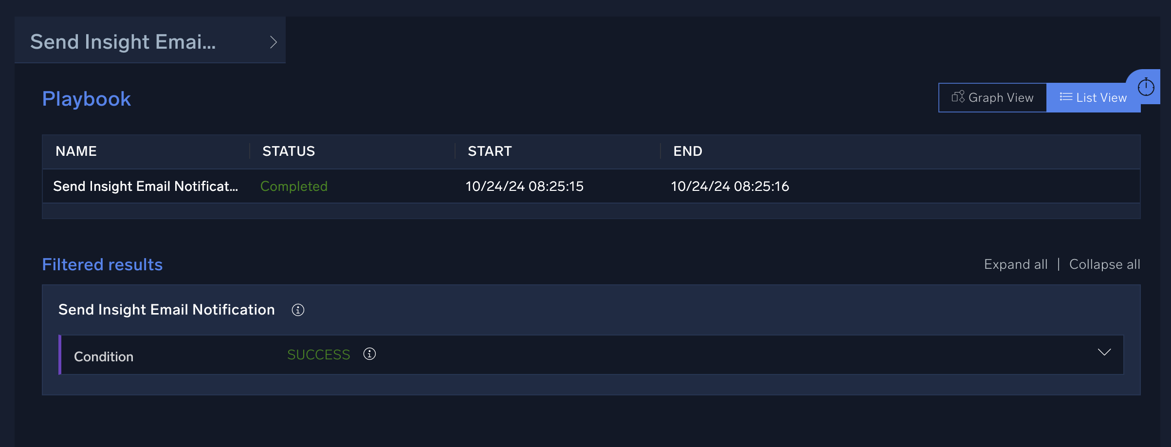 Now that you've created the automation, it is ready to run. If you set the automation to run when an insight is created or closed, it runs automatically.