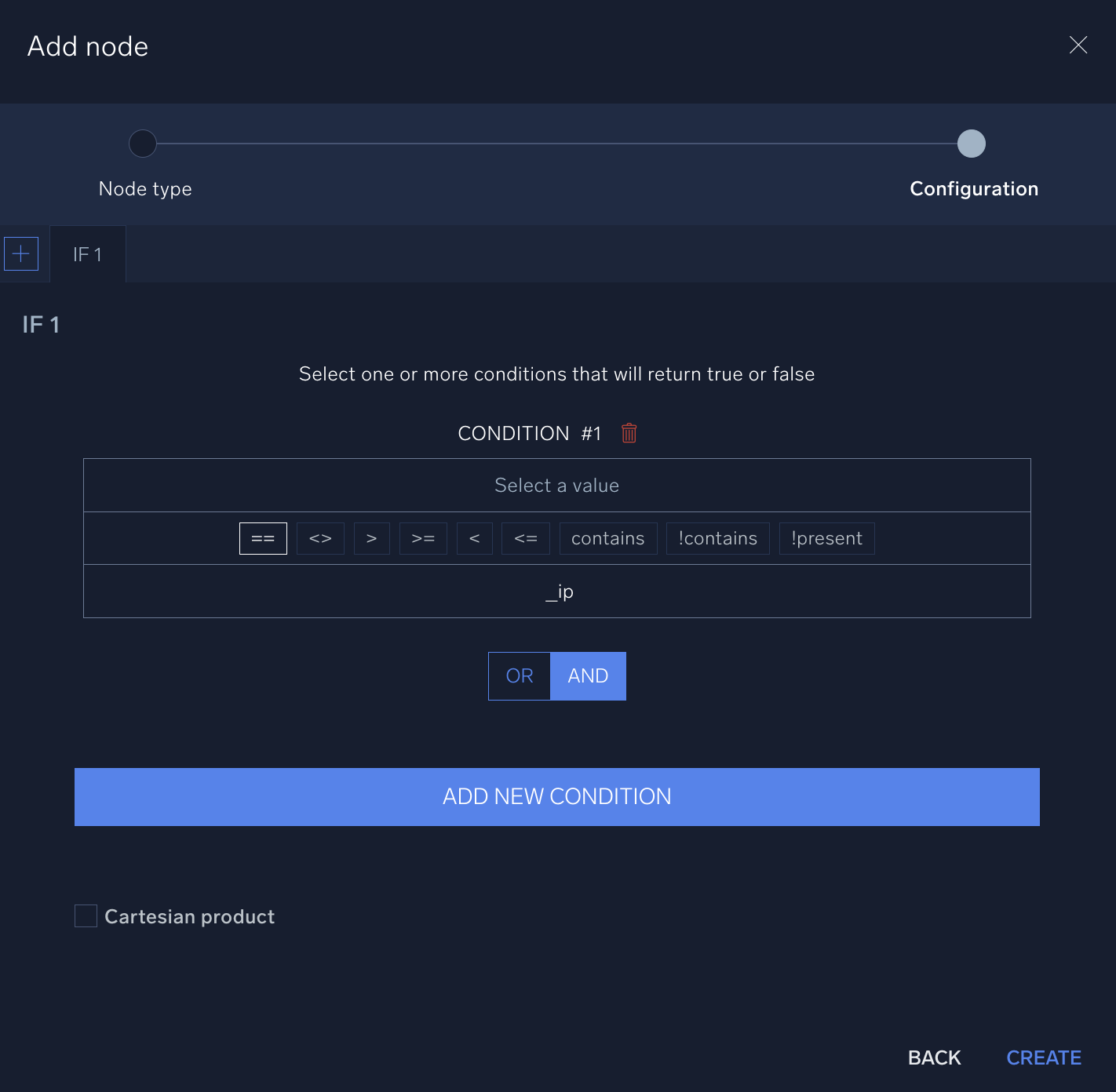 - Click the Add Node button (+ icon) on the CONDITION node.