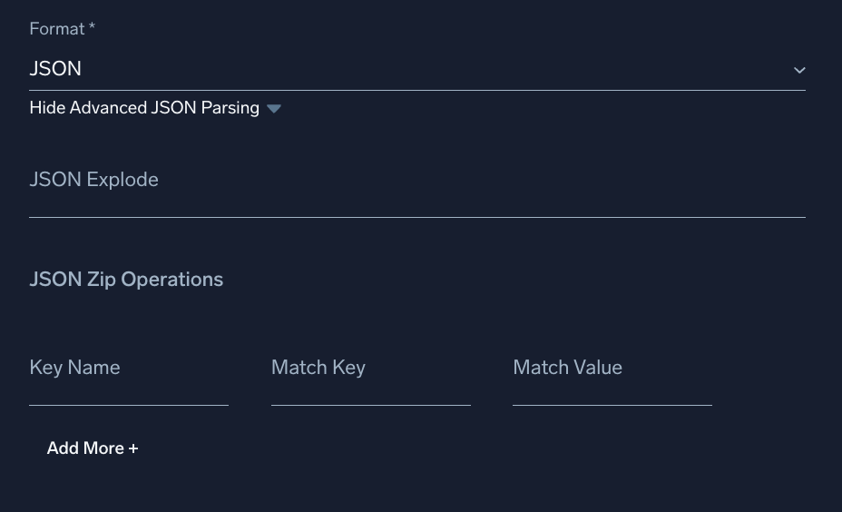 If you would like to manipulate the JSON data before it’s flattened and parsed, expand the Advanced JSON Parsing section of the popup.