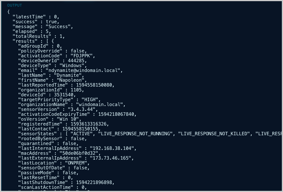 This enrichment queries the Carbon Black Device API for an IP address and returns host information.