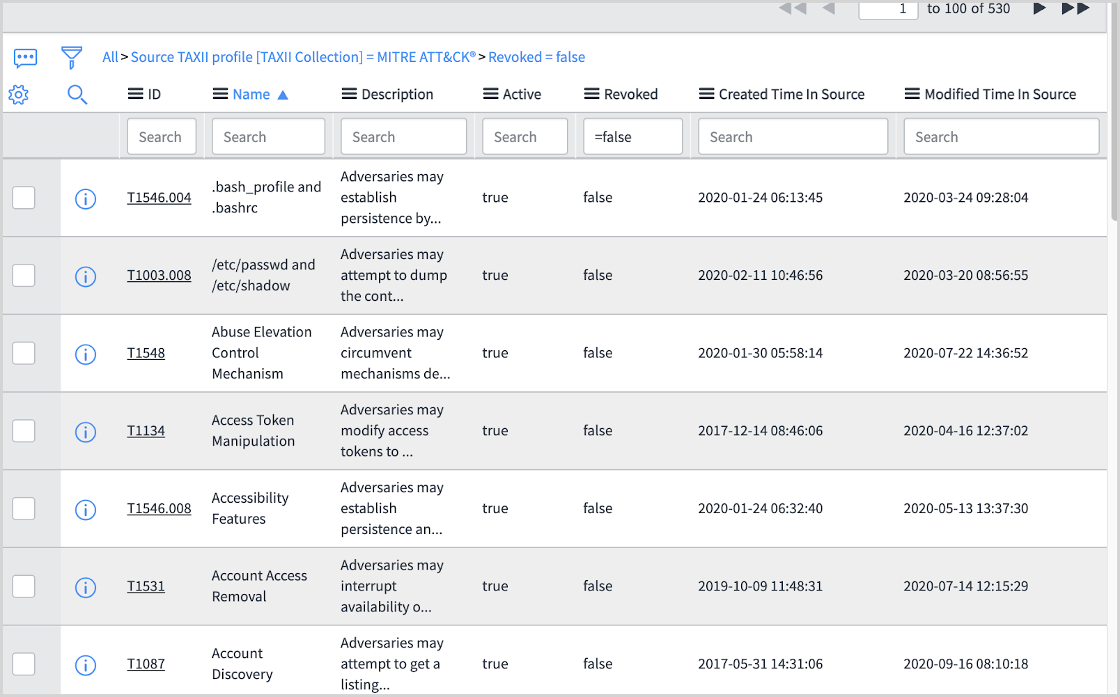 - To verify the population succeeded, in the navigation bar search for "MITRE ATT&CK Repository" and click Techniques.