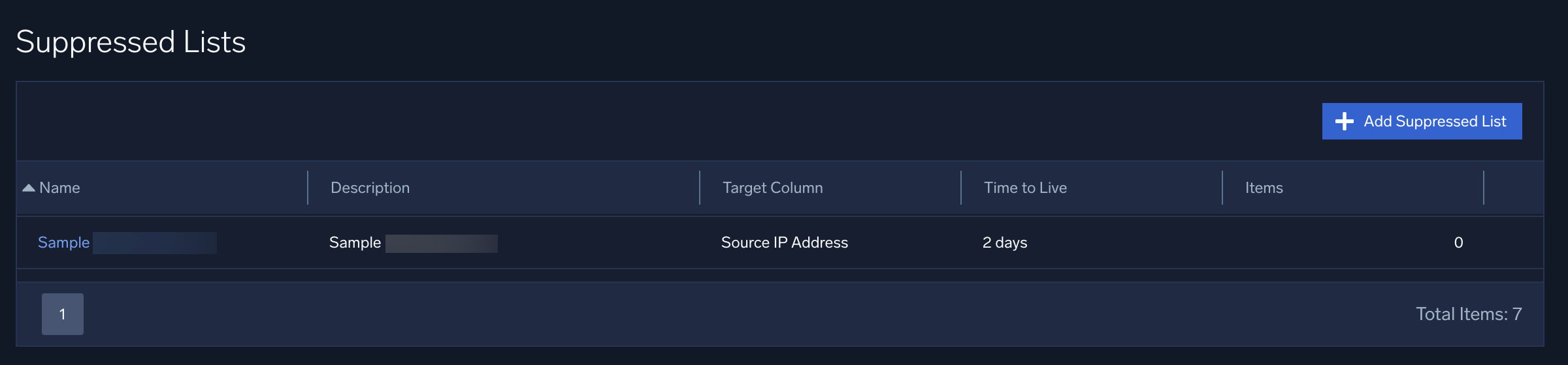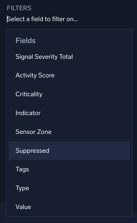 Signals can be suppressed based on the presence of a suppressed indicator in any of the records associated with a signal. You create lists of indicators, which are things like IPs, hostnames, URLs, domains, and so. You can set a TTL (time to live) after which an indicator will be unsuppressed. You can create these lists on the Suppressed Lists page, available from the content menu.