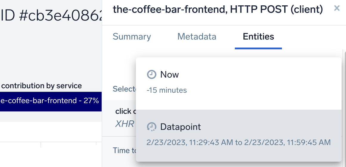 Use the time selector to set if data is related to the "now" moment of time or the moment of time around the data point you clicked on.