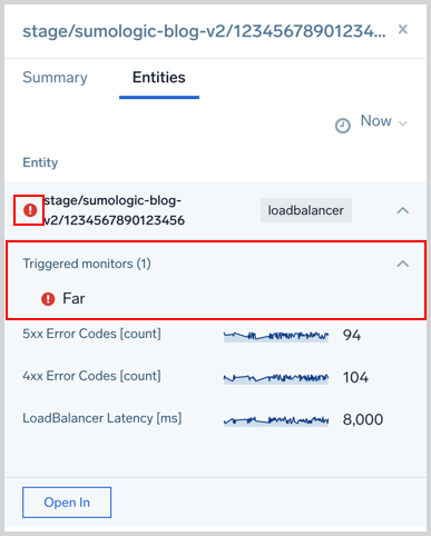 Click the Triggered monitors row to view the related Monitors. You can click on them to view the Monitor on the Monitors page.