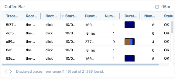 Number of spans35A trace consists of spans. This number tells you how many spans are in the trace.
