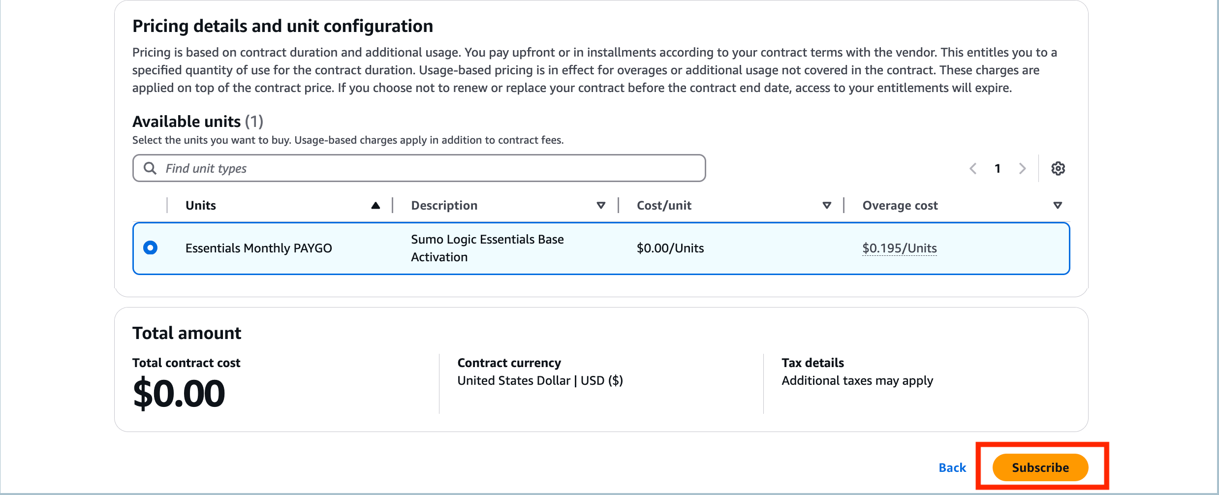 - Configure your free trial contract and click Subscribe.