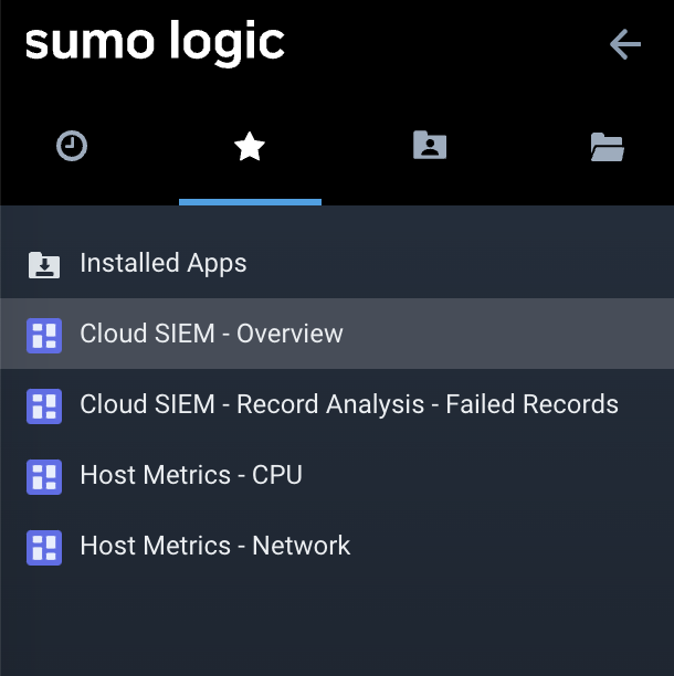You can create a list of favorite dashboards and searches that appear in the left nav bar. Your Favorites list makes it easy to access your most frequently used dashboards and searches.