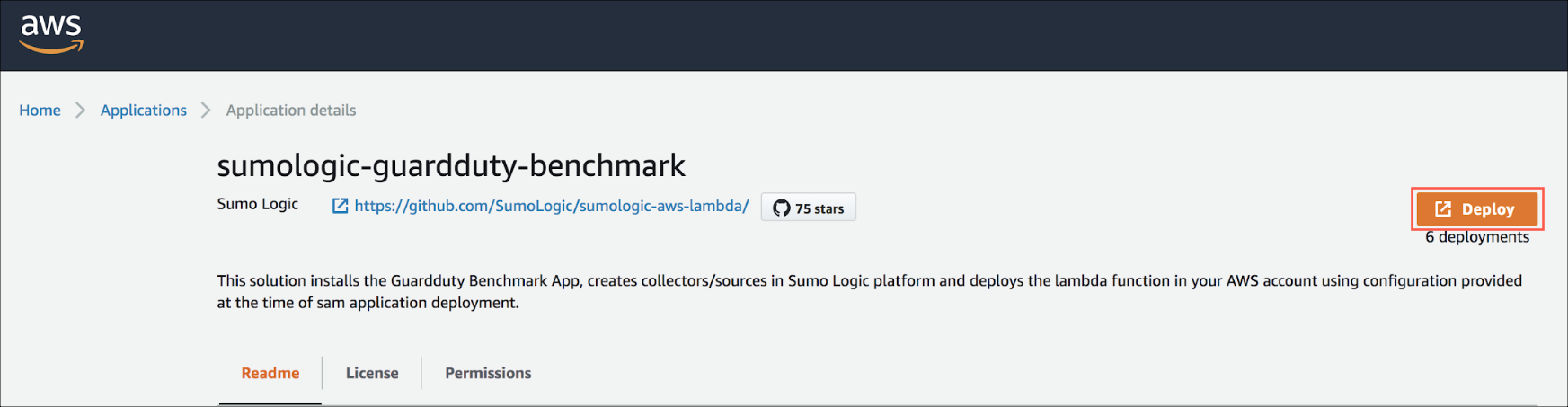 Step 2: Deploy the Sumo Logic GuardDuty Benchmark SAM App