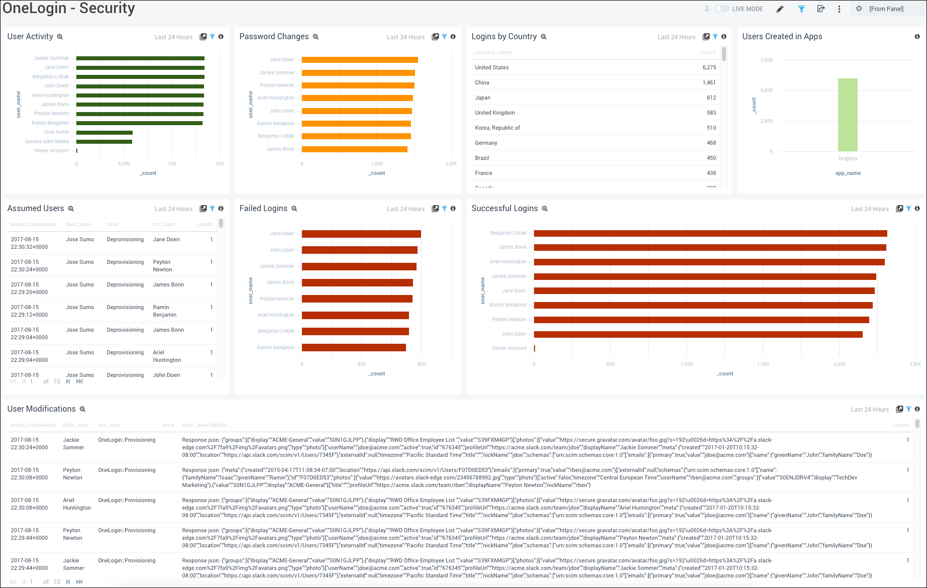 Password Changes. See the count of password changes by username as a bar chart for the last 24 hours to quickly identify any unusually high numbers of password changes by a particular user.