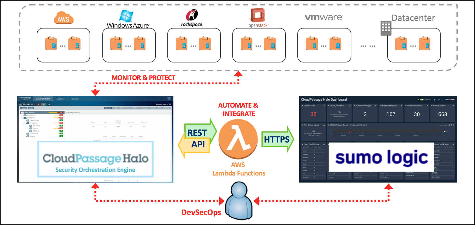 The CloudPassage Halo app uses the Halo REST API and AWS Lambda to collect Halo events.