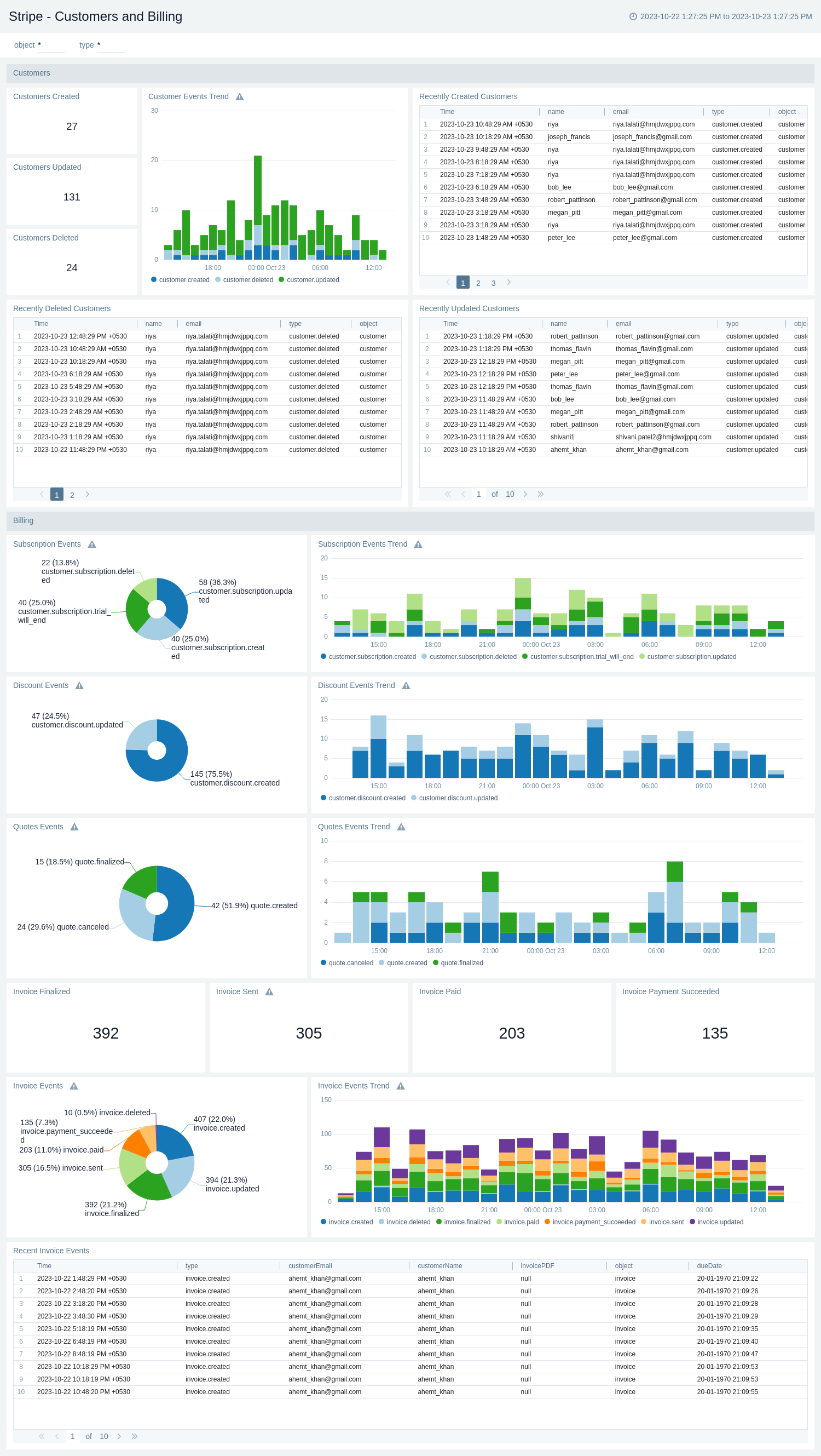 The Stripe - Customers and Billing offers valuable insights and statistical data about customer and billing-related events including subscriptions and invoices.