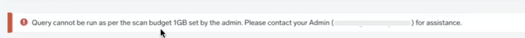 - Only allow background query scans. A warning message will be displayed if you run a query that exceeds the budget set. This will block the foreground searches but will not impact any background searches/automated queries.