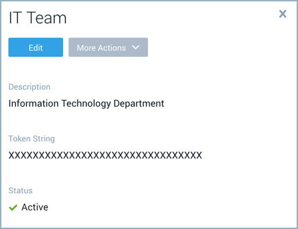 Select Deactivate from the menu on the right of the row on the table or in the details pane of the token under the More Actions dropdown.