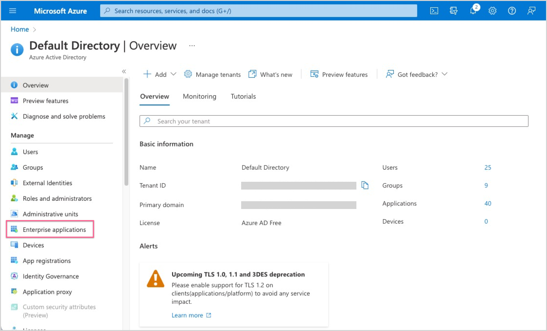 - Go into the Microsoft Azure Management Console and select Azure Active Directory in the left-side navigation pane.