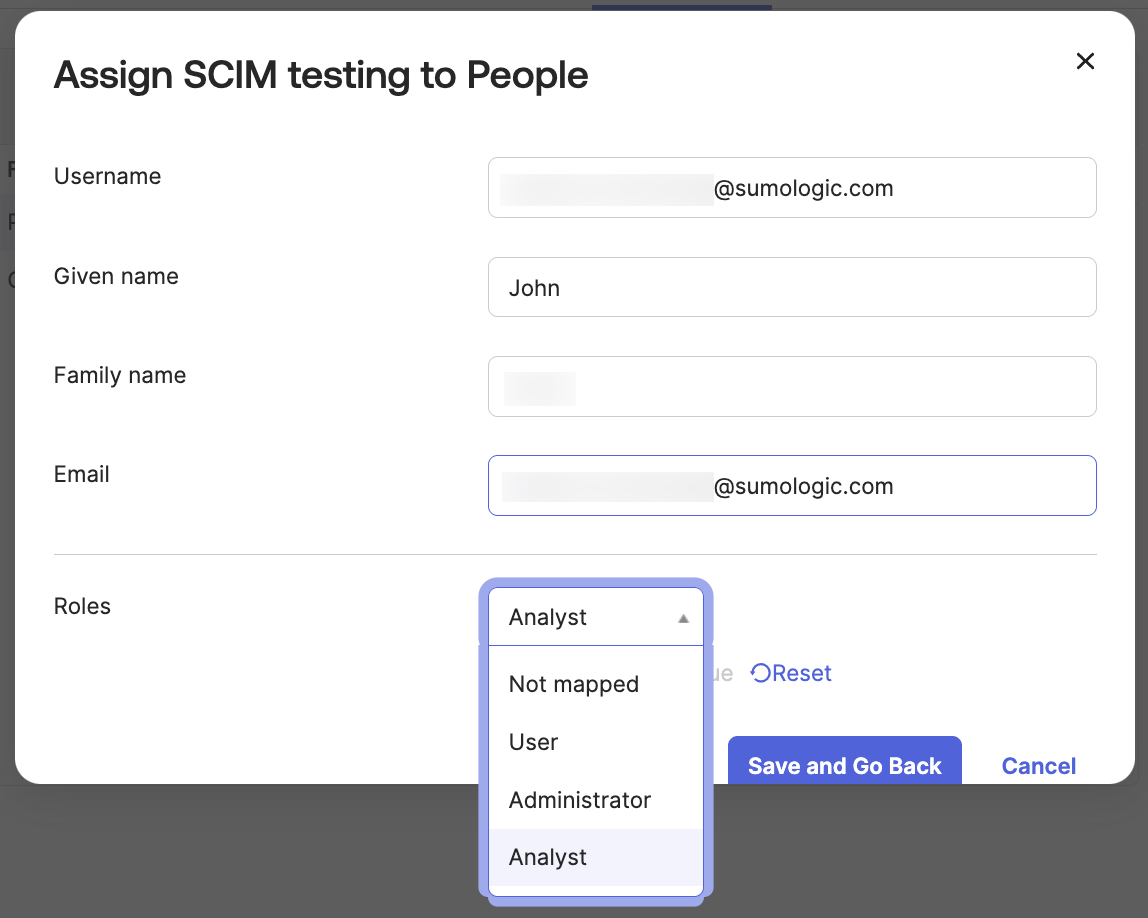 When you modify the name, email, or role of a user assigned the app in Okta, the changes will be synced to the corresponding user in Sumo Logic.