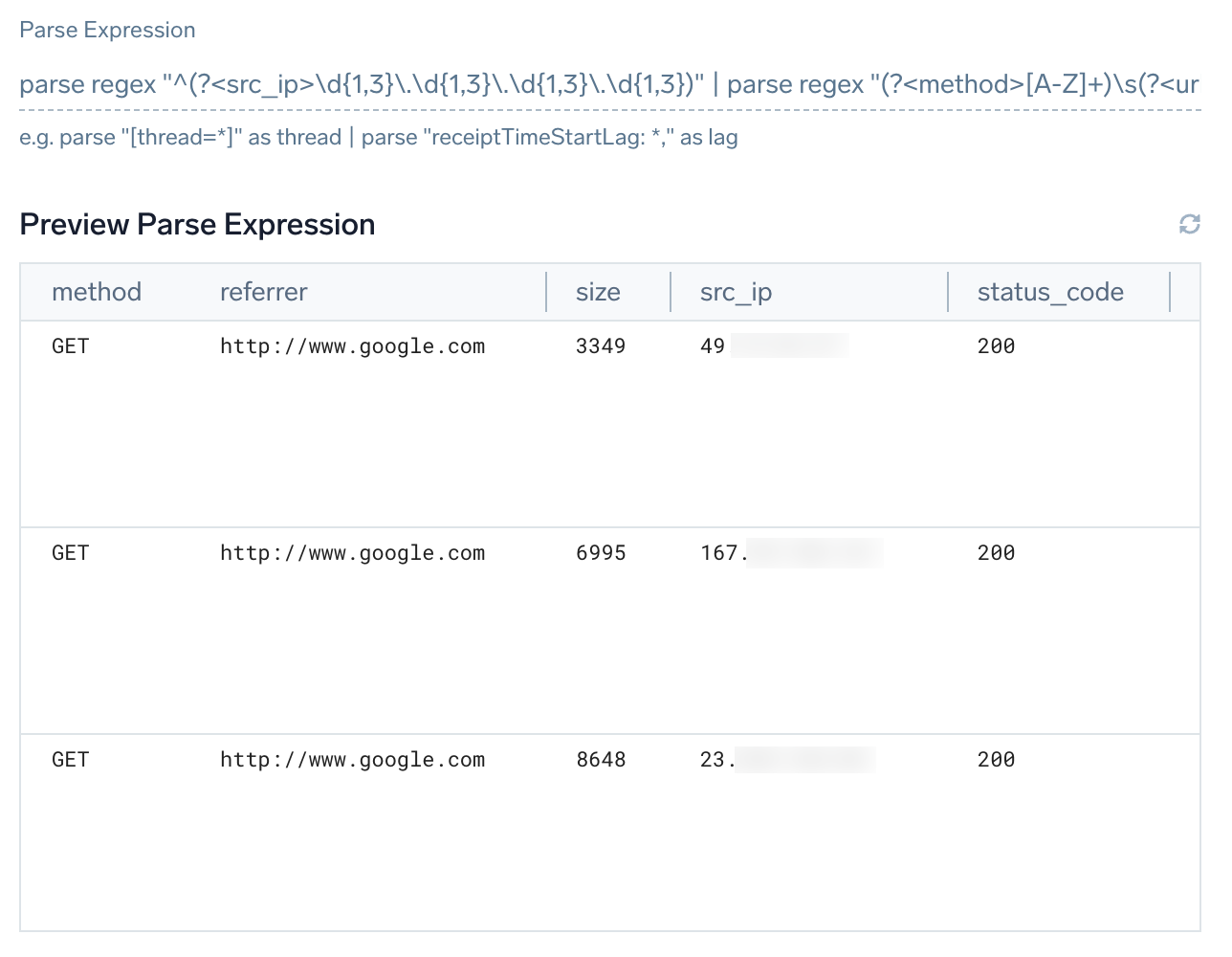 Parse Expression. Enter a parse expression to extract desired fields from the logs that match the scope query. The parse operators supported in logs to metrics rules are listed below. Other parse operators are not supported.