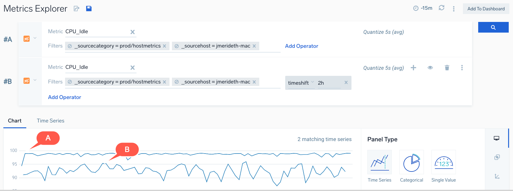 #B _sourceCategory=prod/host _sourceHost=my-mac= metric=CPU_Idle | timeshift 2h