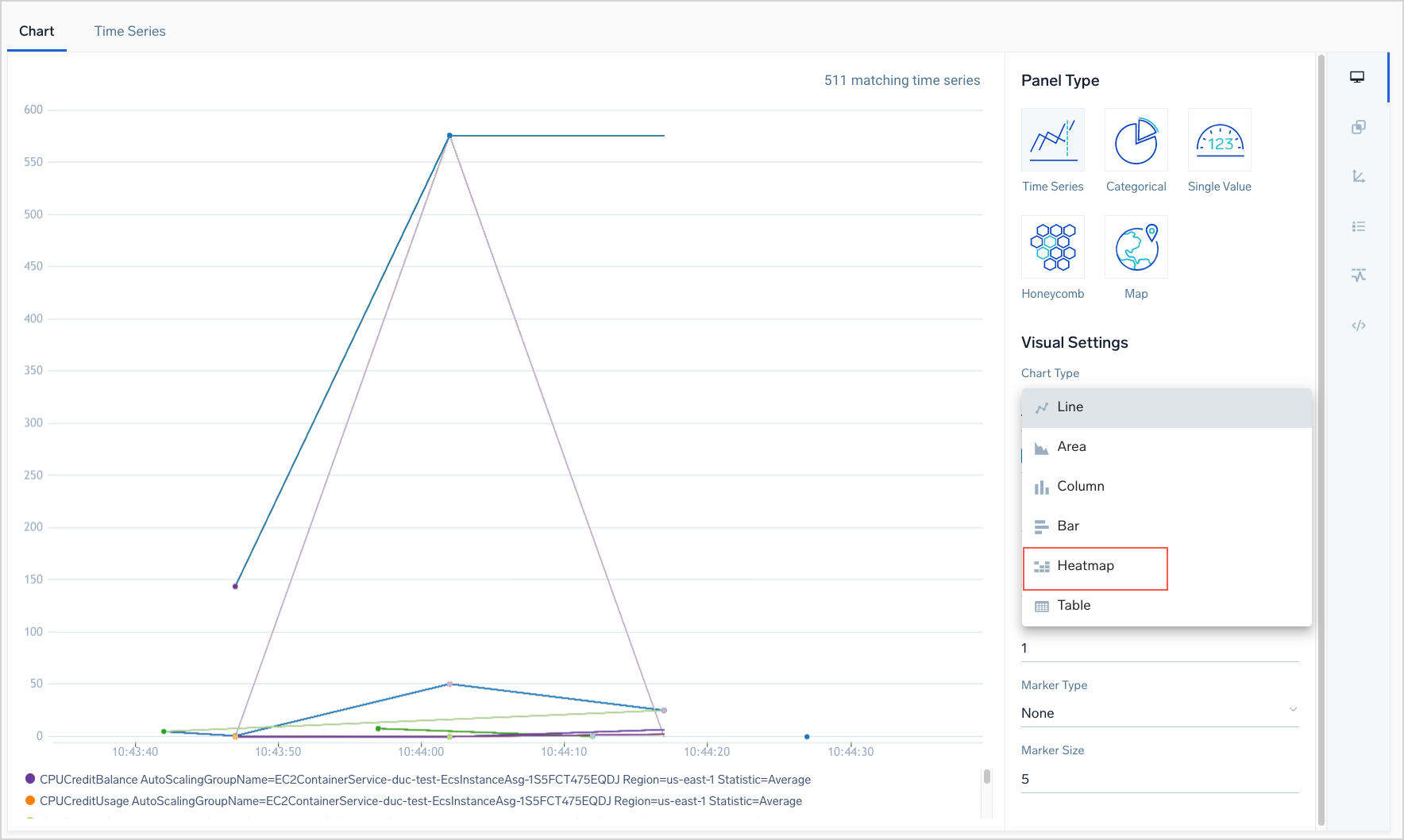 - On the Chart tab, select Heatmap from the Chart Type dropdown.