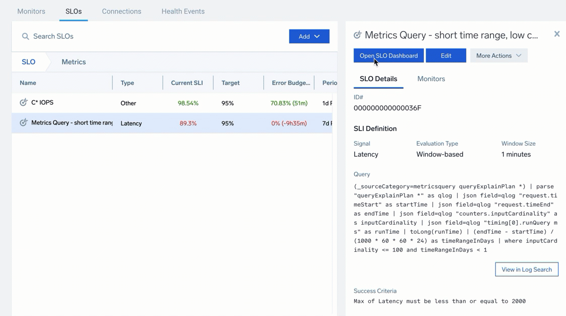 Classic UI. In the main Sumo Logic menu, select Manage Data > Monitoring > SLOs. - Double-click on any SLO line item.