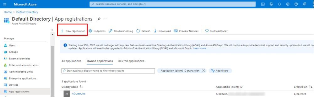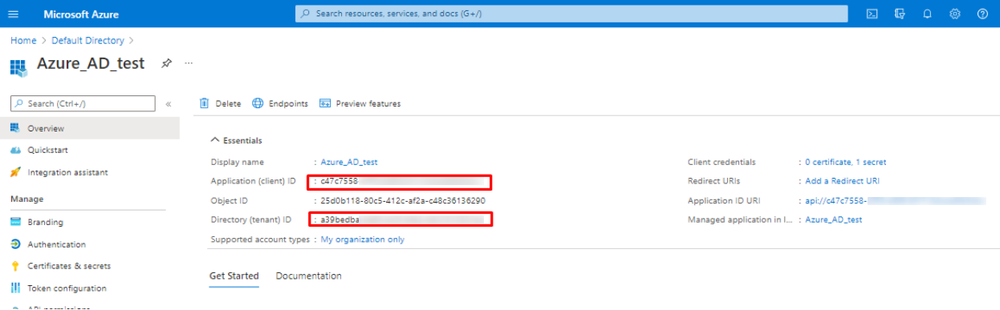 - Select your application in App registrations in the Azure portal.