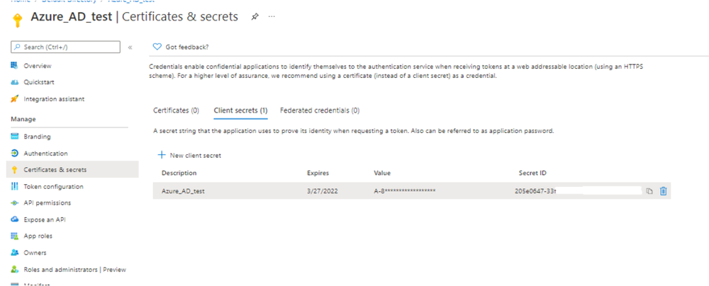 - Configuration of Azure AD application is completed, you will need application’s Client ID, secret, Tenant ID.