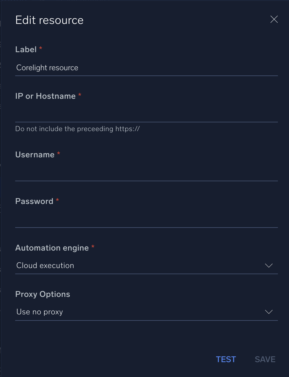 IP or Hostname. Enter the IP or the hostname of your Corelight instance. Do not include the preceding