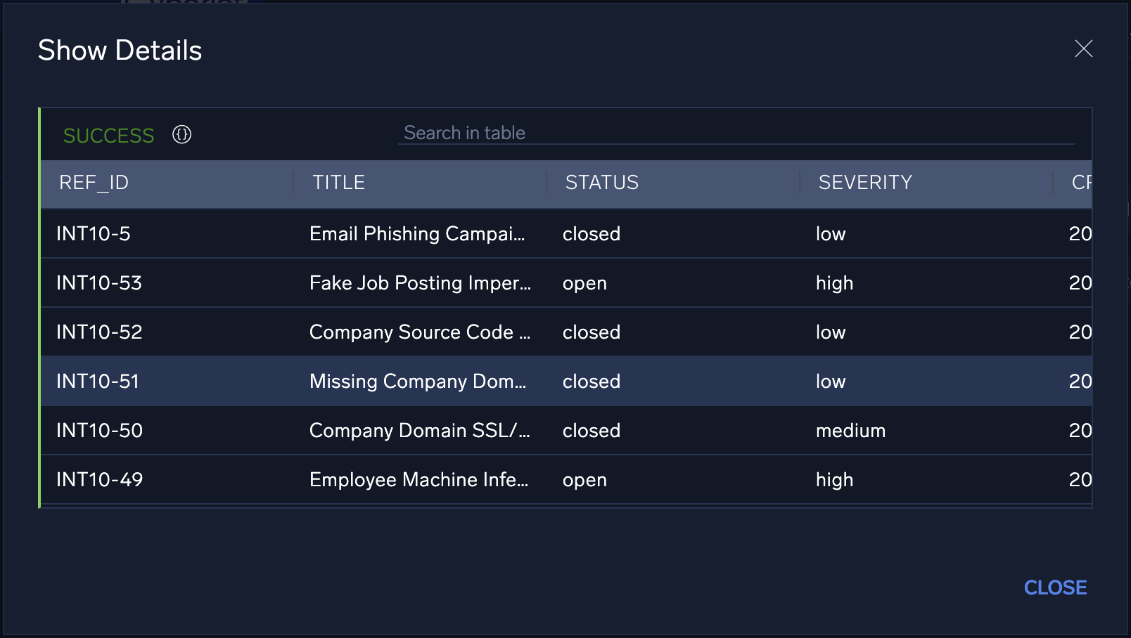 Before you start exploring the features of the Cyberint app, try test runs of each of the actions to learn specifics of usage. For general information about testing actions, see Test action.