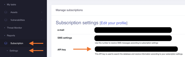 - Log in to Cybersecurity Help to get your API Key.