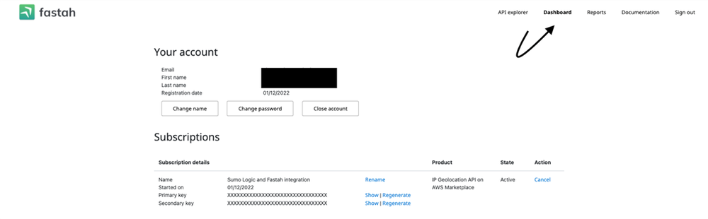 Sign in to Fastah API Developer Console with your email and password. Then go to Dashboard and under Subscriptions copy your primary key.
