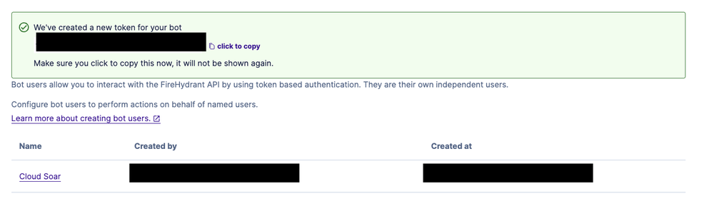- Login to FireHydrant with your email and password and refer to the Bot users page.