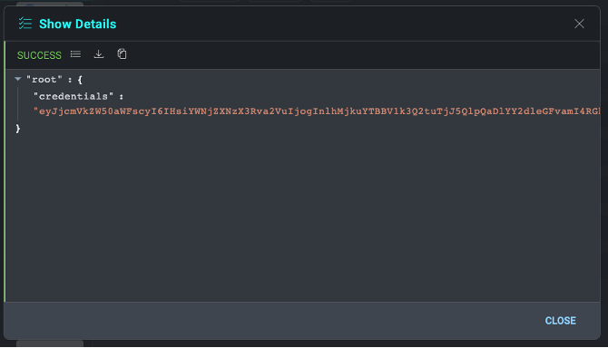 This will return a JSON result with a "credentials" key. Copy the value of this key, which is a base64-encoded string JSON credential we will use in the next and final step.