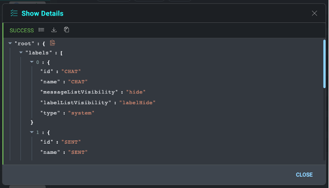 You can test that the integration credentials are working by running the "Get Labels" action (no inputs are needed). If successful, it will return a JSON result of mail labels.