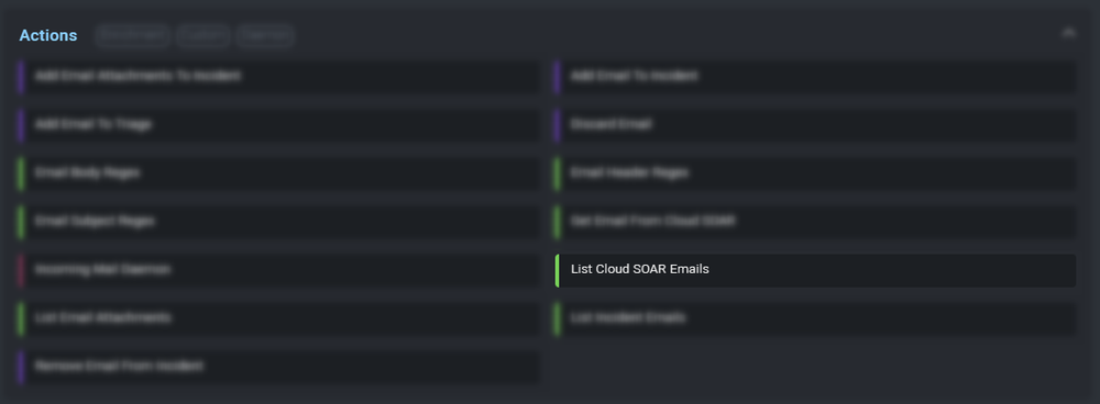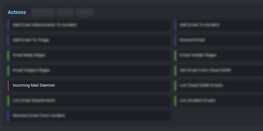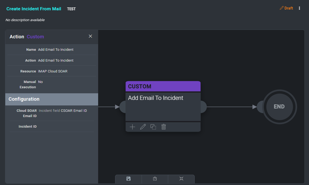 - Use the same action Add Email to Incident as seen before. This action is used to attach the email to the current incident.