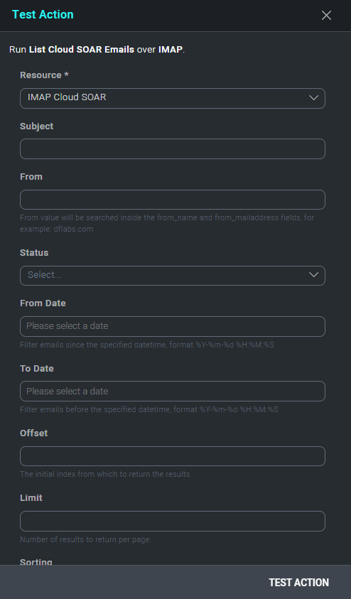 You can use the List Cloud SOAR Emails action directly from the Mail Tools integration page: