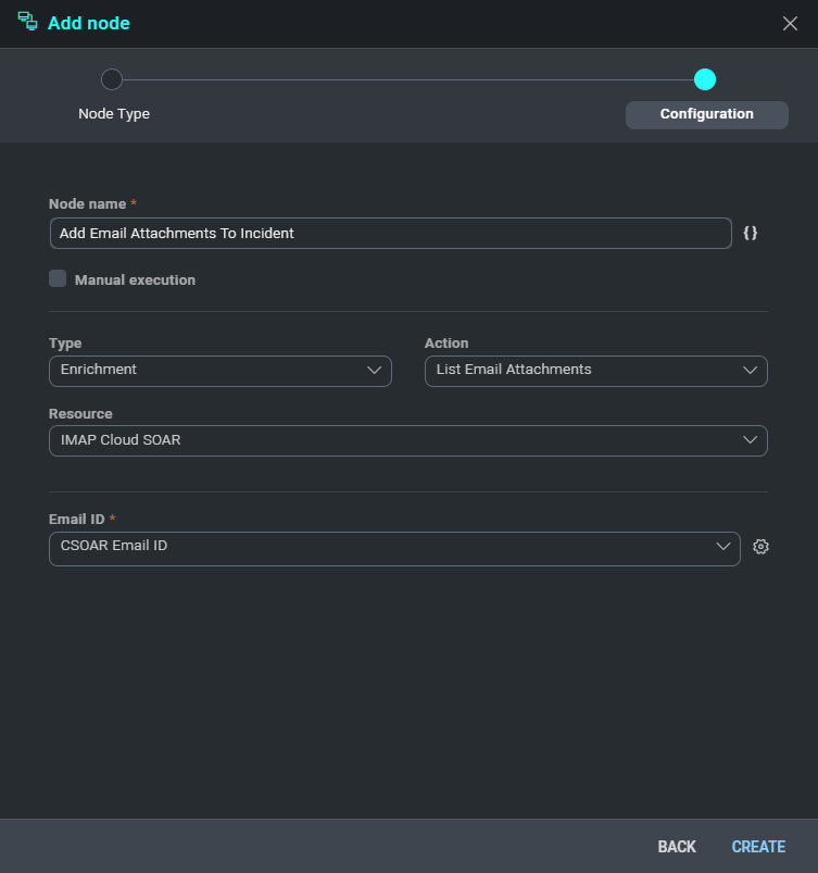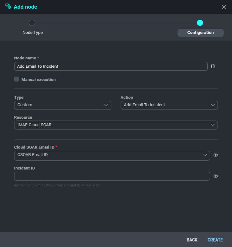 For Cloud SOAR Email ID choose the ID that you created earlier (for example, CSOAR Email ID from Incident fields).
